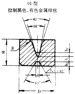 (3)在同一型號中,所表示的參數(shù)(如內(nèi)徑)有重現(xiàn)時,則在重現(xiàn)規(guī)格的參數(shù)后加“-”,再寫上其外徑值,以示區(qū)別。如11-0.4和11-0.4-13,兩者均為內(nèi)徑0.4毫米的11型圓孔模,但外徑不同。前者外徑為8毫米,后者外徑為13毫米。